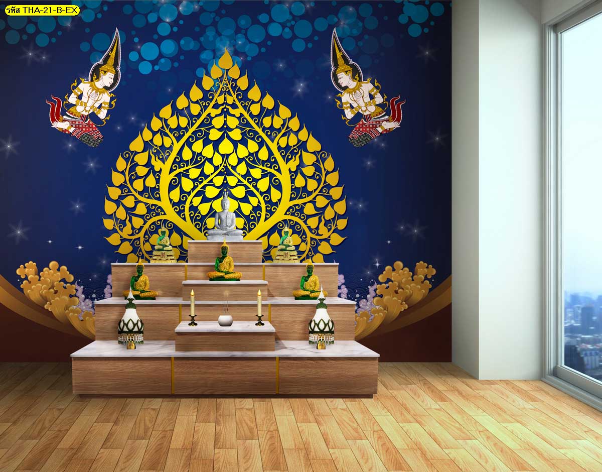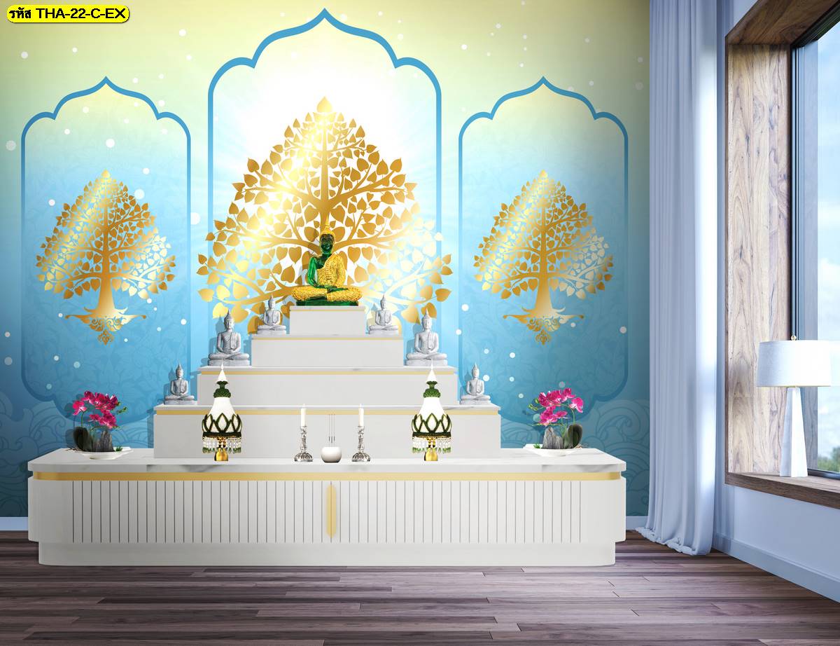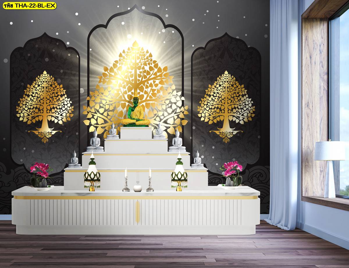 - ภาพห้องพระ ลายต้นโพธิ์ premium ตกแต่งผนังห้องพระในบ้าน EP.1